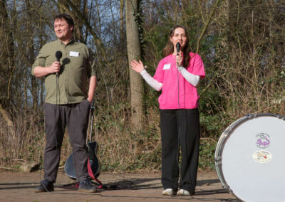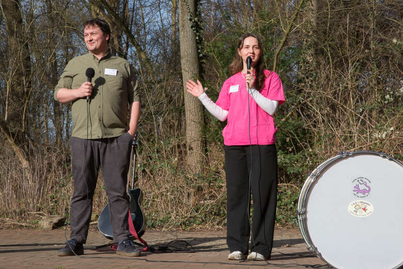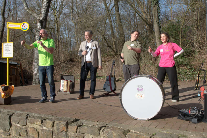 Auf der Bühne standen Stadtbaurat Thimo Weitemeier, Osnabrücks Biodiversitätsmanager Martin Rudolph und die Umweltpädagogin Paulina Lüttmann. Thomas Solbrig, Geschäftsführer der Lega S Jugendhilfe, führte mit viel Humor durch die Eröffnungsveranstaltung.